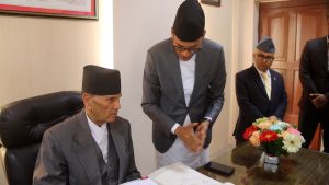 काठमाडौं । नवनियुक्त परराष्ट्रमन्त्री बालानन्द शर्माले पदभार ग्रहण गरेका छन्। शुक्रबार राष्ट्रपति कार्यालयमा सपथग्रहण गरेलगत्तै मन्त्रालय पुगेर उनले पदभार ग्रहण गरेका हुन्। पदभार ग्रहणपछि मन्त्री शर्माले मुलुक र मन्त्रालयको उद्धारका साथै प्रगतीका लागि आफूले मन्त्रालय सम्हालेको बताए। उनले भने,‘मुलुक हाम्रो हो। जति हामी खाली राख्छौं […]