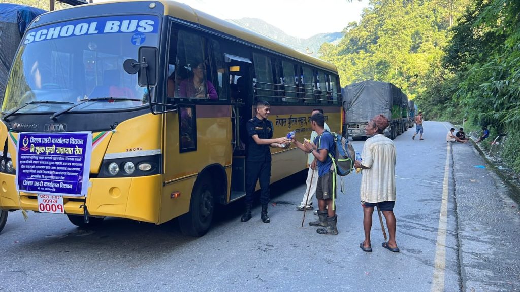 त्यसरी अलपत्र परेका यात्रुलाई प्रहरीले निशुल्क घुम्ती यातायात सेवा सञ्चालन गरेर चितवन नारायणगढ, भरतपुर पुर्याउने काम गरिरहेको छ। आज बेलुकासम्म प्रहरीले ५५० जना यात्रुलाई सहजीकरण गरेकाे छ।