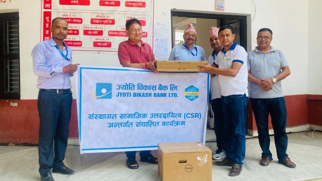 हालै जेनजी आन्दोलनका क्रममा भएको आगजनीका कारण यी कार्यालयका अधिकांश सामग्री नष्ट भएका थिए। सेवाग्राहीले समस्या भोग्नुपर्ने अवस्थाको समाधानका लागि ज्योति विकास बैंकले सहयोग स्वरूप कम्प्युटर उपलब्ध गराएको हो। यसले नापी तथा मालपोत कार्यालयलाई सेवा प्रवाहलाई सहज र छरितो बनाउन मद्दत पुग्ने अपेक्षा गरिएको छ।