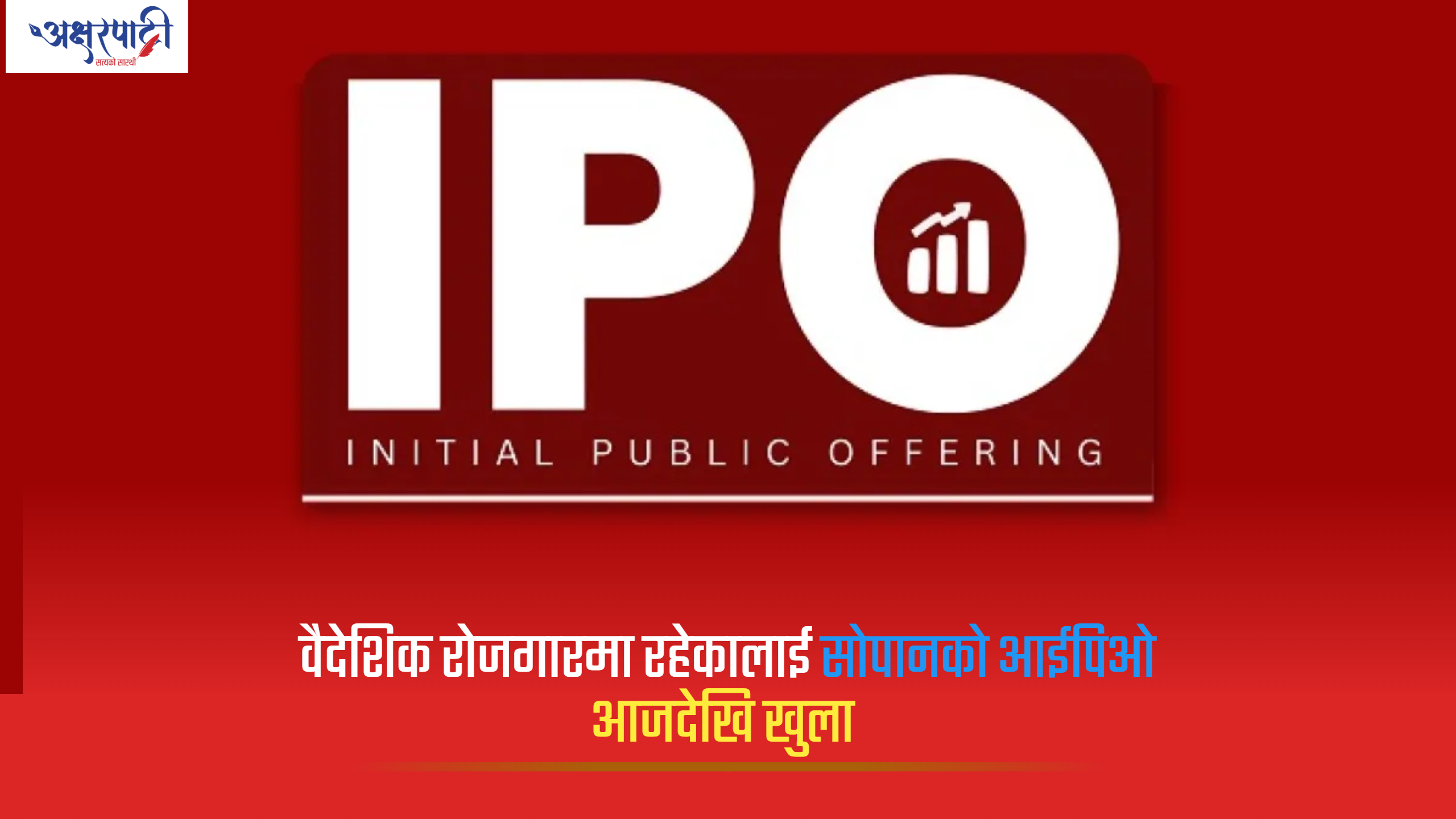 काठमाडौं । सोपान फर्मास्यूटिकल्स लिमिटेडले चैत ९ गते साेमबारदेखि वैदेशिक रोजगारीमा रहेका नेपालीका लागि प्राथमिक शेयर (आईपिओ) निष्काशन तथा बिक्री खुला गरेको छ।