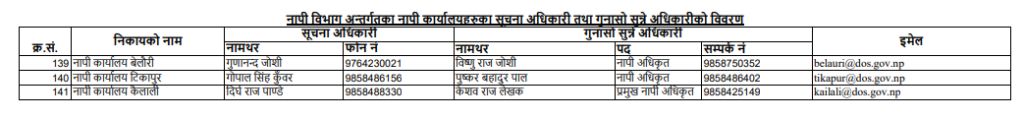 गुनासो सुन्ने अधिकारीको पनि मोबाइल नम्बर र इमेल ठेगान सहित विवरण सार्वजनिक गरिएको छ।