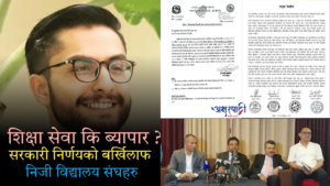 o अक्षरपाटी विशेष काठमाडौं। निजी तथा आवाशीय विद्यालय अर्गनाइजेनस (प्याब्सन)ले आफ्नो सुविधासम्पन्न भवन खरिद गर्दा लागेको ऋण तिर्नका लागि विद्यार्थी र अभिभावकमा आर्थिक बोझ थोपर्ने निर्णय गरेको पाइएको छ। प्याब्सनको महत्वाकांक्षी योजना अनुसार केन्द्रीय कार्यालयको भवन खरिद गर्दा लागेको ऋण तिर्न सघाउने केही निजी कप्पनीका […]